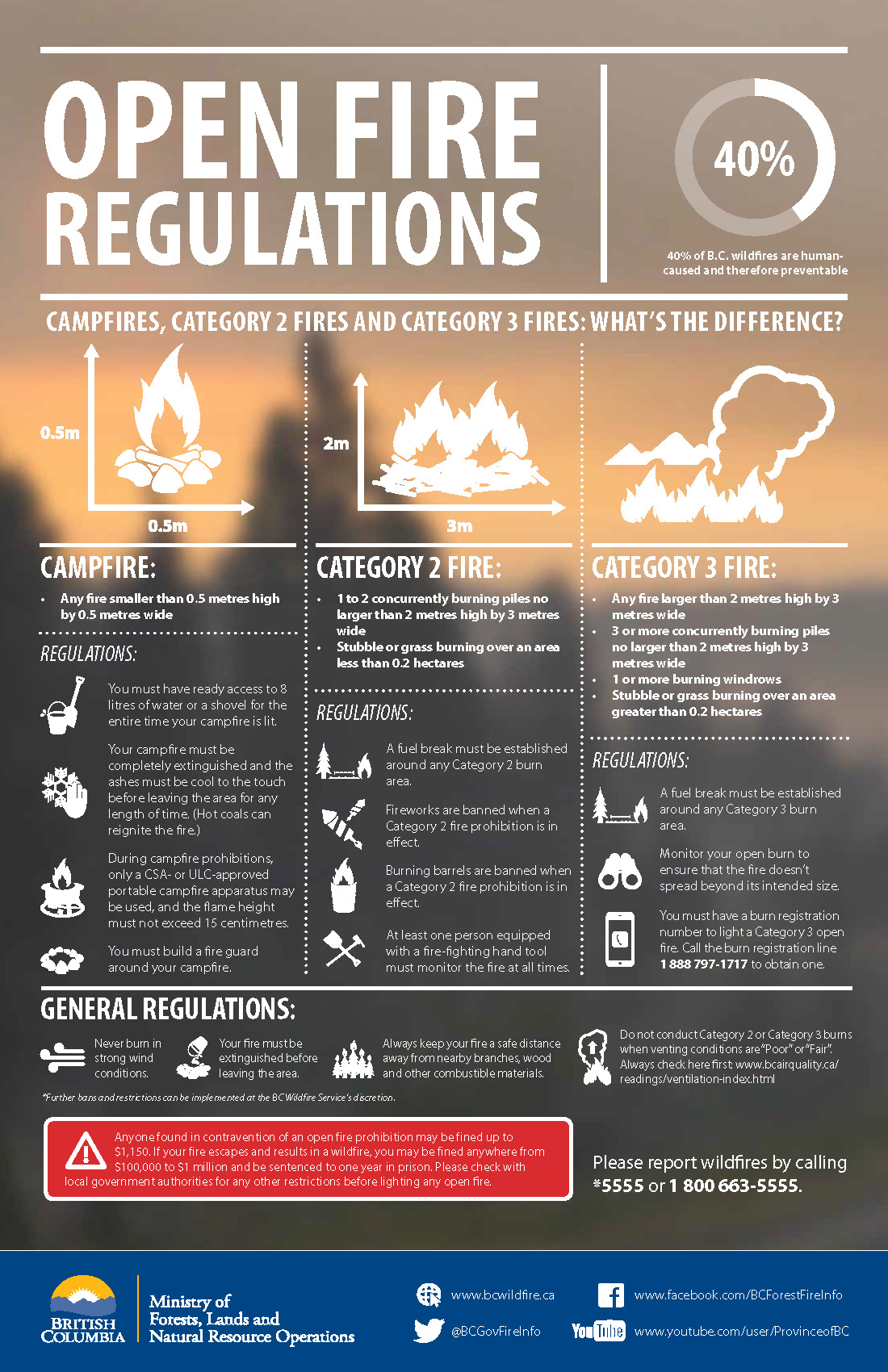 For the most current fire ban/restrictions information go to http://bcfireinfo.for.gov.bc.ca/hprScripts/WildfireNews/Bans.asp